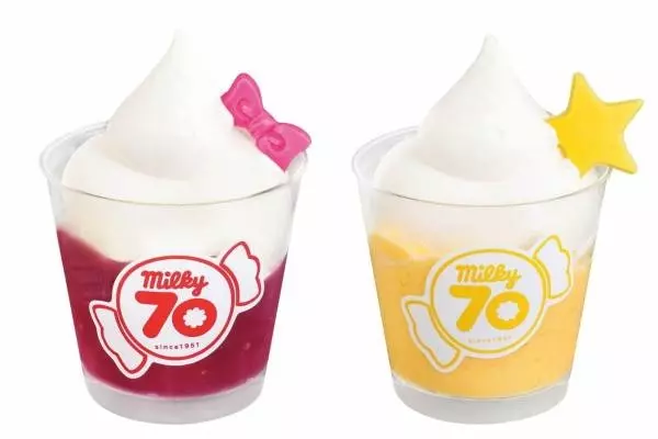 「ミルキー」の新たな価値を提供するブランド「milky70 since 1951」では、人気商品「プレミアム milky ソフトクリーム」を自分好みのカラーでカスタマイズできる「推し色ソフト」を販売する。タレントやキャラクターの推し色に合わせてカスタマイズし、”推し活”を楽しむことができるオリジナルスイーツである。