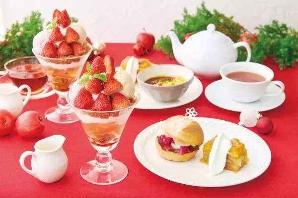 さらに、クリスマスの贅沢ティーコース限定品「苺と林檎のスペシャルパフェ」もセットに。