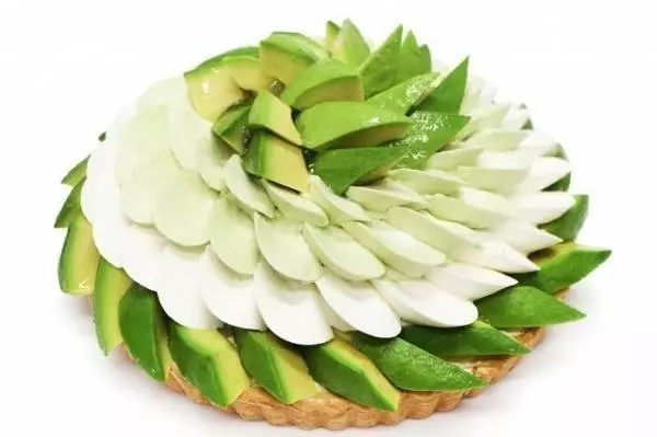 「アボカドと柿のショートケーキ」は、アボカドクリームと黒蜜を入れた“和風”ショートケーキに、アボカドや柿の果実、柿ジャムをトッピングしたもの。鮮やかなグリーンとオレンジのコントラストが効いており、見た目にも美しい一品に仕上げている。
