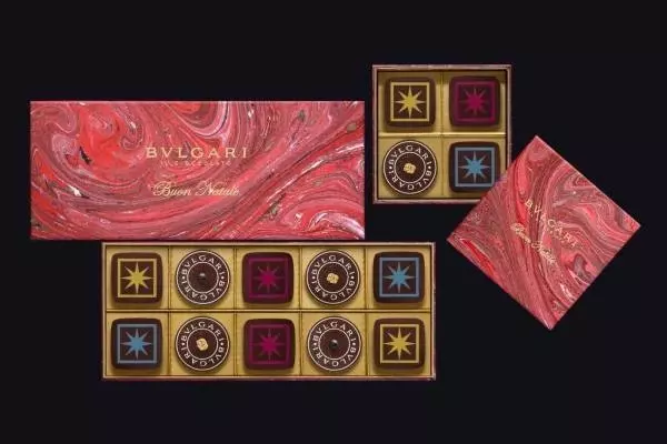 チョコレートのデザインには、 人気の「ブルガリ・ブルガリ」のロゴや、ブランドのアイコンであるエイトポイントスターを起用し、ファンにはたまらない華やかなボックスになっている。