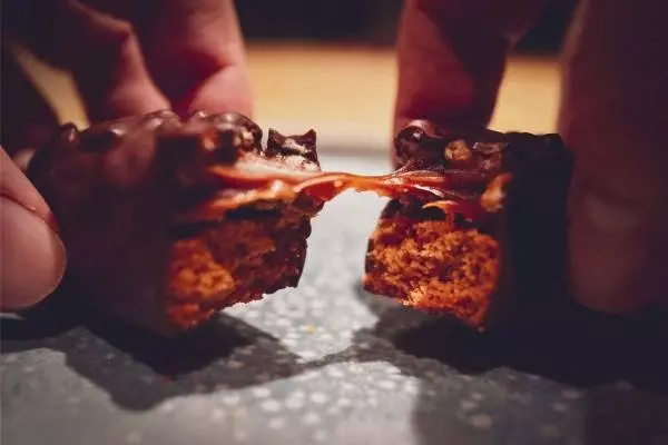 中でもおすすめしたいのが「キャラメルバー」。眞砂が幼少期に愛したキャラメル入りチョコレートバーをパティスリーの味で再構築した一品で、ザクっとした食感のクッキーに苦味が程よいキャラメルソース、たっぷりのドライフルーツを詰め込んでいる。