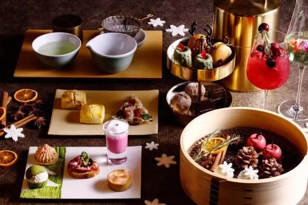 ホテル ザ ミツイ キョウトの「フェスティブアフタヌーンティー 」では、クリスマスシーズンだけの華やかなスイーツ&セイボリーを展開。