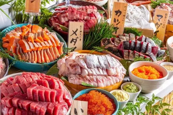 食べ放題メニューは刺身のほか魚の煮付けやフライなどを合わせて約30種類。制限時間は82分となっており、時間内に好きなだけ海鮮を楽しむことが出来る。