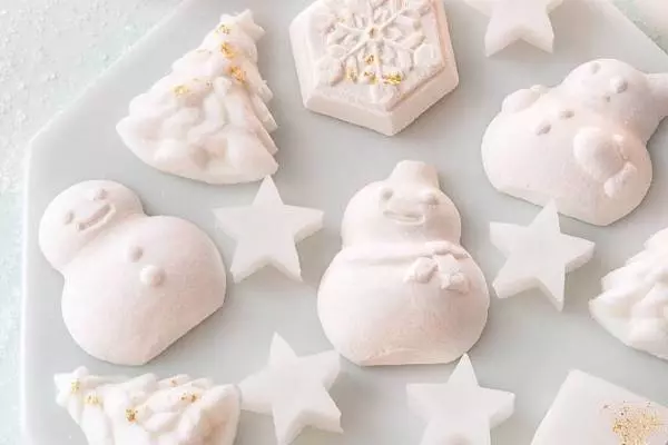 京都・西陣で1803年に創業し、200余年の歴史を刻む老舗京菓子司・鶴屋吉信から、クリスマスにちなんだロマンティックな和菓子が登場。「お干菓子詰合せ ホワイトクリスマス」は、真っ白な雪景色を想起させる、ホワイトカラーの和菓子で、ところどころに金箔を散りばめてきらりと光る雪の粒を表現した。
