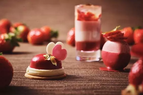 ハートモチーフを散りばめた苺&チョコレートスイーツ