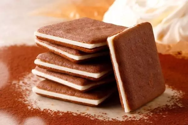 エスプレッソクッキーにマスカルポーネチーズのチョコをサンド