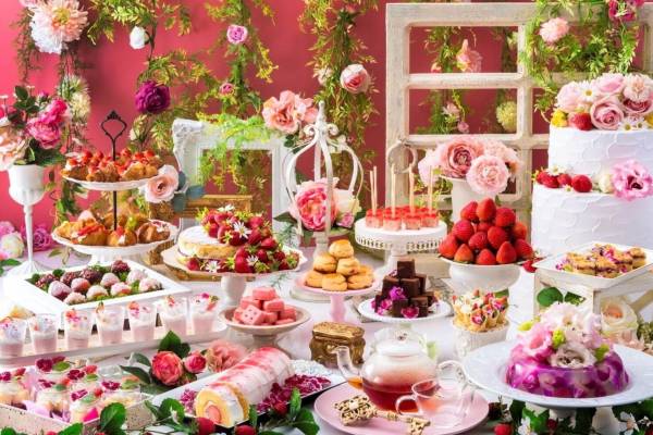 神戸ポートピアホテル『秘密の花園』テーマのいちごスイーツブッフェ、エディブルフラワーで華やかに彩って