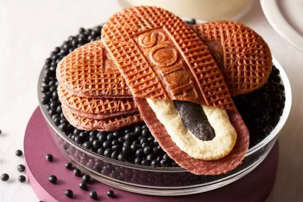そんな「ソールズ ゴーフレット」に“和の新フレーバー”として、「バターゴーフレット あんバター」が登場。こだわったのは、ゴーフレット生地やバタークリームとの相性を追求した“黒豆あん”だ。小豆ではなく北海道産の黒豆を使用したあんに、北海道産の甜菜糖と隠し味の醤油を合わせて、上品かつまろやかな甘さに仕上げた。