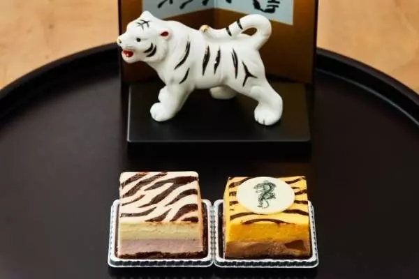アンダーズ 東京・ペストリー ショップから、新年を祝して“トラ柄”の「干支 寅 スイーツボックス」が登場。口どけのよいフルーツフレーバーのムースをベースに、チョコレートで大胆なアニマル柄を描いた。