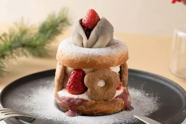 中でも特に注目したいのは、出来立てのドーナツをナイフとフォークでいただく「ドーナツメルト いちご大福」。一番人気の「ドーナツメルトストロベリー」に、いちごと大納言小豆を生八ッ橋で包んだ大福を大胆にトッピングした、和×洋の新感覚ドーナツだ。