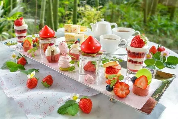 リーガロイヤルホテル(大阪)の「デザート&ティー "ストロベリーガーデン"」は、旬を迎える"苺"をテーマにしたティーセット。彩り豊かなスイーツを、香り豊かな紅茶やコーヒーと共に楽しめる。