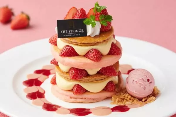 ザ ストリングス 表参道の限定苺スイーツ、ミルフィーユ×パンケーキのハイブリッドケーキやパフェ