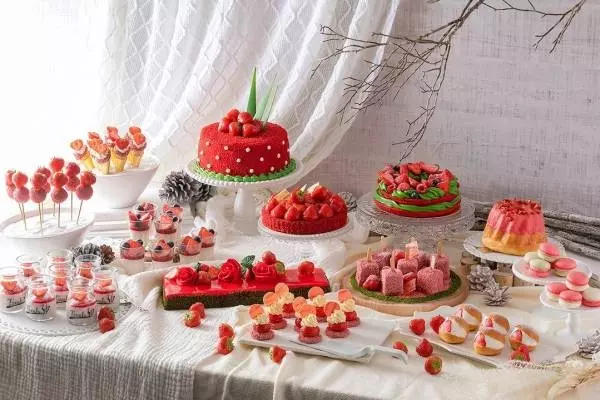 1月に登場するのは、35種類以上のスイーツ&セイボリーを楽しめる「恋するストロベリースイーツビュッフェ」。ストロベリーマリトッツォやストロベリーとピスタチオのロールケーキ、季節のイチゴとマスカルポーネのピッツァなど、苺を使用した多彩なメニューを用意する。