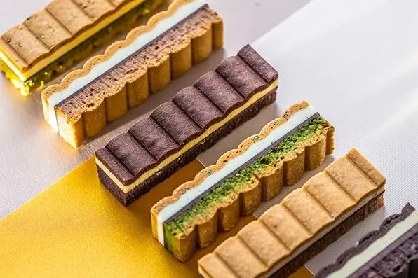 中でも注目したいのは、「ラウ」のシェフパティシエールがフランスと京都の街で見た“瓦屋根のある風景”をイメージしたスイーツ「Nami-Nami」。波型のサブレで軽やかなクリームと濃厚な板チョコレートをサンドした“サクサク食感”のクリームサンドチュイールだ。