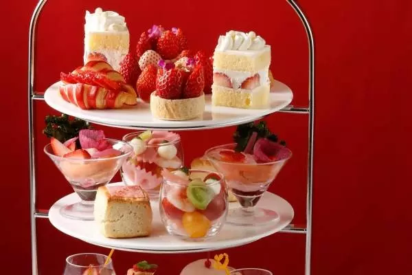 帝国ホテル 東京で毎年好評のストロベリーフェアを2022年も開催。旬を迎える苺をたっぷりと使用した人気のアフタヌーンティーに加え、苺づくしのパフェやケーキなどを展開する。