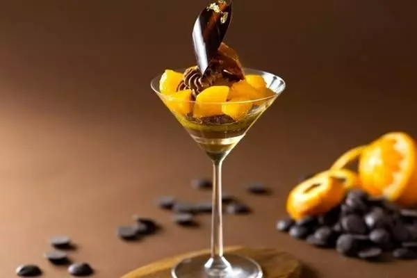 「パルフェ ショコラオランジュ」は、チョコレートと相性の良いオレンジを組み合わせたスイーツ。洋酒・グランマルニエをアクセントとして加えることで、よりリッチな味わいを演出している。