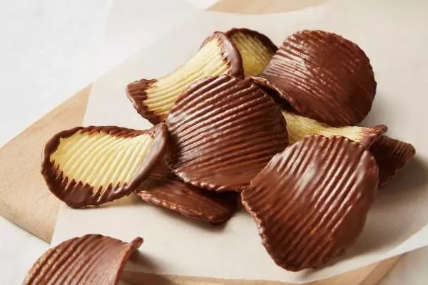 ポテトチップスとの相性を徹底的に追求し、厳選したチョコレートを使用。濃厚なチョコレートの風味と塩味の効いたポテトチップスの絶妙な組み合わせで、一度食べ始めると止まらない、くせになる味わいの一品となっている。