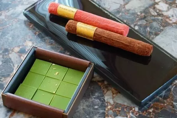 また、抹茶チョコレート「御成 -ONARI-」は、京都市指定有形文化財に指定されている長楽館3階の和室「御成の間」の格天井をイメージした1品。