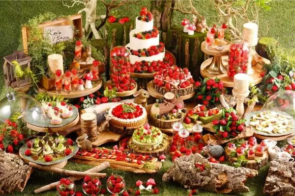 切り株をイメージしたチョコロールケーキや、抹茶のクランブルで森を連想させる抹茶のティラミス、チョコレートで象った蝶々など、“いちごとチョコレートの森のスイーツパーティー”をイメージした可愛らしいスイーツも会場を彩る。
