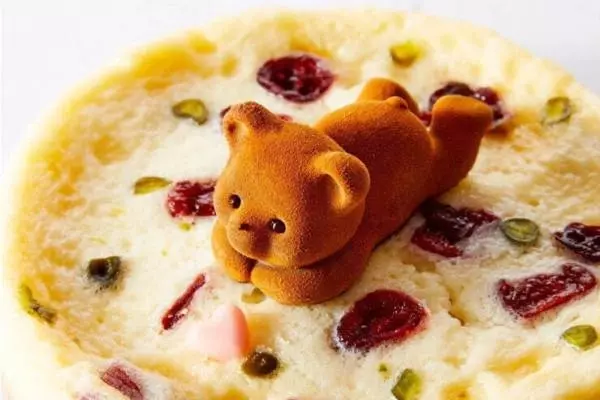 中でも注目したいのは、ルワンジュ東京のアイコン的存在であるテディベアのヌーミーをあしらった濃厚チーズケーキ。箱を開けるとハートの奥に寛ぐヌーミーがチラリと見える、キュートなルックスが魅力だ。
