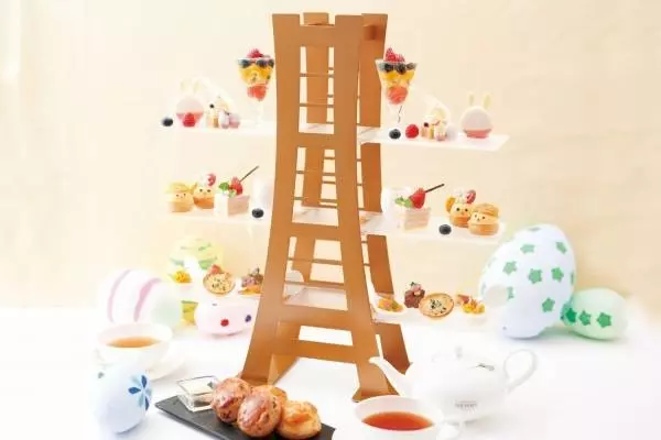 横浜ロイヤルパークホテルの新作アフタヌーンティー、“春のお祝い”イースターをイメージしたもの。生命や復活の象徴とされる卵、その卵を運んでくると言われる“イースターバニー”、また卵から顔を出すひよこなどをモチーフにした、キュートなスイーツを展開する。
