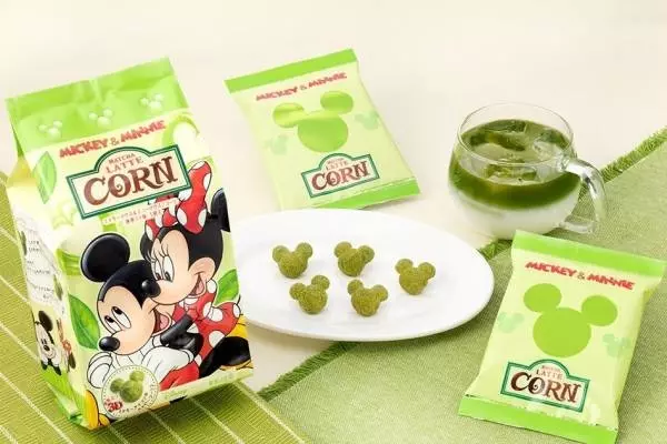 ぷっくりとした3Dミッキーマウス型の菓子「ハッピーコーンシリーズ」より、新作となる抹茶フレーバーが仲間入り。かわいい見た目ながら、ふわっと抹茶が香る大人の味わいに仕上げている。