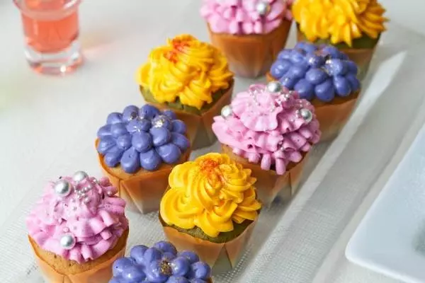 可愛らしい花を模したカラフルなカップケーキや、フレッシュな果物を贅沢にデコレーションしたタルトケーキなど、見た目にも華やかなスイーツも勢ぞろい。お菓子感覚で楽しめるスイーツパンなどに加えて、カレーパンなど食事系ブレッド、サンドウィッチ、スープも揃うので、遅めのランチとして利用するのもおすすめだ。