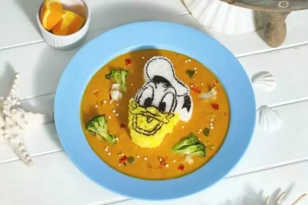フードには、ハッピーな「ドナルドダック」をイメージしたカレーライスや、浮き輪を彷彿とさせるツナバーガーとサラダのセットプレート、“くちばし型”のチキンピタパンサンドが主役のバスケットなどが登場。