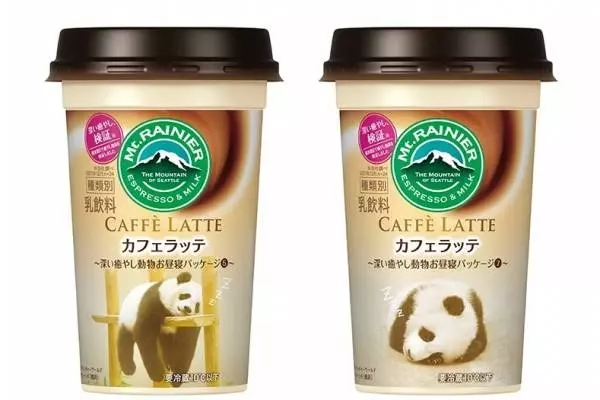 人気カフェラテ「マウントレーニア カフェラッテ」“動物の寝顔”の新パッケージ、パンダの楓浜など