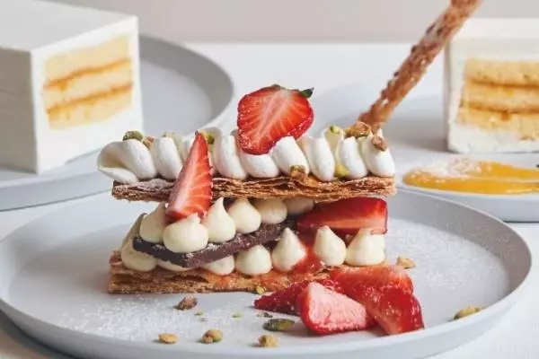 “まるで宝石”とも言われる奈良県明日香村のいちご「あすかルビー」は、ミルフィーユにアレンジ。