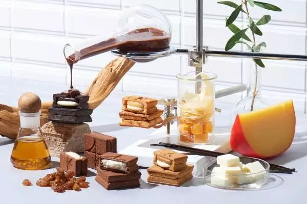 たとえば「バターサンド〈ラムレーズン〉」は、ラムレーズン好きに捧げる芳醇な香りのバターサンド。ラム酒に浸したラムレーズンと最高級ラム酒「ディロン トレヴューラム<V.S.O.P.>」を配合したバタークリームを、ラム酒パウダーを加えた生地でサンド。クリームの水分量を上げられる要冷蔵商品の特性を活かして、ラムレーズンの風味を最大限に引き出した一品だ。