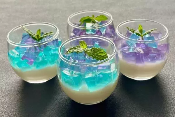 ほろ苦い味わいが魅力の「珈琲水ようかん」や、ザクザクとした食感の「抹茶クランチチョコレート」、香り豊かなずんだとコク深いチーズがマッチした「ずんだのチーズケーキ」、ブルーとパープルのコントラストが美しい「あじさいゼリー」など、パティシエ自慢のスイーツ18種を取り揃えた。