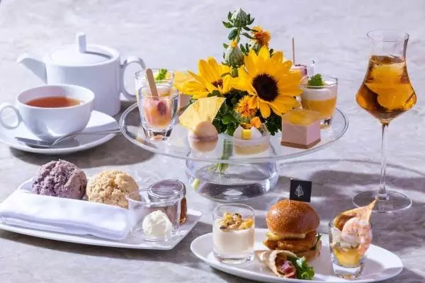 フォーシーズンズホテル京都では、夏の太陽の輝きを表現した「サンシャインサマーアフタヌーンティー」を2022年7月1日(金)から9月11日(日)までの期間限定で提供する。