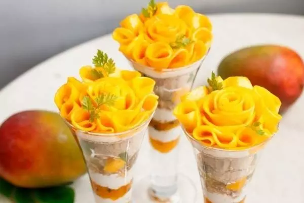 旬のマンゴーを贅沢に使用して、花のように見立てた。グラスの中には、スパイシーなチャイのアイスやライムのジュレを重ねており、爽やかな味わいを楽しむことができる。アーモンドミルクや豆乳、オーツミルクなど“ギルドフリー”な素材選びにも注目だ。