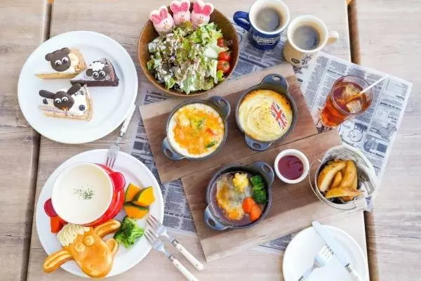 メニューは、とろっとした濃厚チーズに、ひつじのショーンを模ったワッフルなどをディップして味わう「ショーンのチーズフォンデュ」や、ショーンの仲間である3匹の可愛らしいブタを並べた「3匹のいたずらブタのガーデンサラダ」、ひつじのショーンに登場するキャラクターを飾ったキュートなケーキなどがラインナップする。