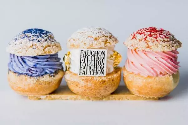 一方、「シュー トリコ」は、フォションの故郷・フランスの国旗“トリコロールカラー”を表現したプチシューだ。ベリージャム&クリームの「青色」シュー、バニラクリームの「白色」シュー、ローズペタルジャムとフランボワーズ&苺クリームの「赤色」シューの3つをかわいく並べて、トリコロールカラーをロマンティックに表現している。