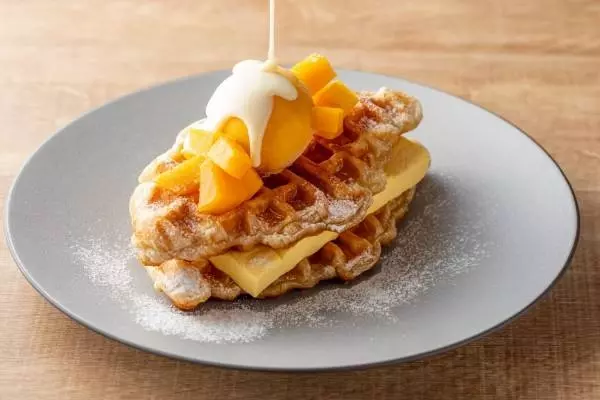 夏の限定フレーバーとして登場する「クロッフル マンゴー & チーズケーキスイート サンドイッチ」は、マンゴーチーズケーキにマンゴーアイス&フレッシュマンゴーを合わせた“マンゴーづくし”のスイーツ。クロッフル生地に重なる華やかなマンゴーの味わいが、夏のトロピカルな気分を盛り上げてくれそう。
