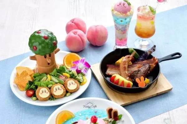 人気ゲームシリーズ「星のカービィ」お馴染みのモチーフの数々で装飾された店内で、カービィをテーマにしたオリジナルメニューの数々を提供している「カービィカフェ」。今回は桃をテーマに、夏のまぶしい日ざしにインスピレーションを得たカービィたちが贈る、様々な期間限定メニューが楽しめる。