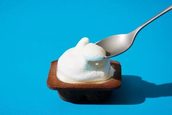 下層の生チーズスフレは、カスタードクリームに、メレンゲと北海道産クリームチーズをブレンドした、チーズワンダーのシグニチャークリーム。コクとチーズの旨味を詰め込んだ生チーズスフレが、味わいを支える柱の役割を果たしている。