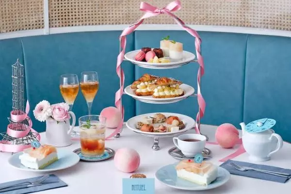フレンチスタイルのカフェ文化をベースにしたケーキやスイーツと共に、優雅で上質なカフェタイムが過ごせる「リチュエル カフェ」。桃をテーマにした新作アフタヌーンティーでは、夏の暑さを癒してくれるような涼やかなピーチスイーツが楽しめる。