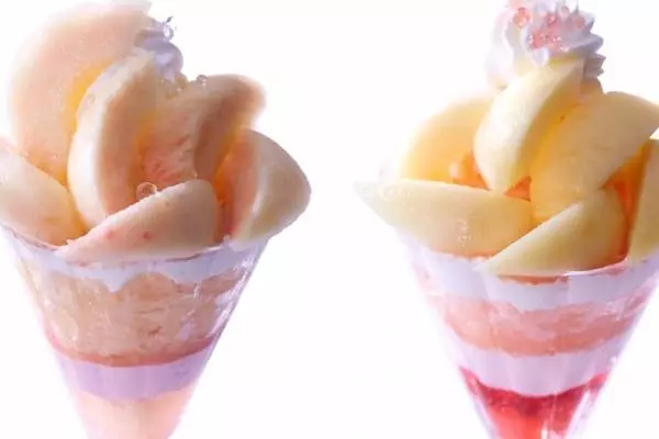 この他、層の重なりが色鮮やかなシーズナルトライフルや、果実の味わいをダイレクトに楽しめる桃のジュース、桃と一緒に味わうワッフルなどがラインナップする。