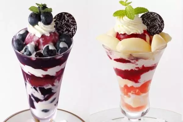 たとえば「山梨県明野産 ブルーベリーのパフェ」は、日照時間日本一を誇る山梨県明野産のブルーベリーを主役にしたパフェ。太陽の恵みを浴びて大粒に育ったフレッシュブルーベリーやブルーベリーのゼリー、ソース、ヨーグルトシャーベットが奏でる、爽やかなハーモニーが楽しめる一品となっている。