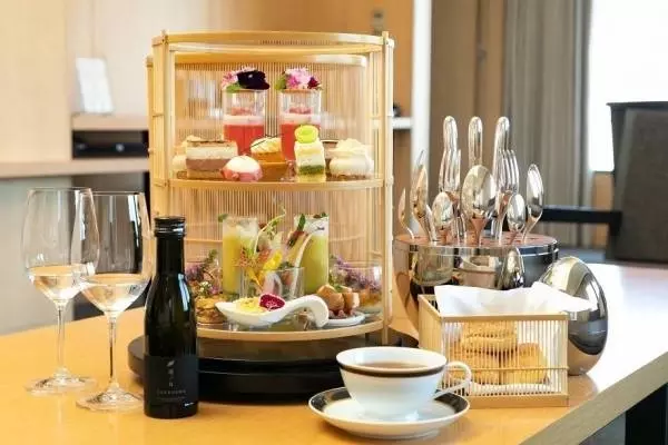 目玉となるのは、チェックイン後に部屋にて提供される「ザ・キャピトル アフタヌーンティー」だ。アフタヌーンティーと一緒に、週に1度のみ販売される高級日本酒「鷹の目(TAKANOME)」をウェルカムドリンクとして提供。また今回のスイートルーム限定で、セイボリー1品を「鷹の目(TAKANOME)」に合わせたメニューに変更しており、日本酒と共にゆったりと味わうことができる。