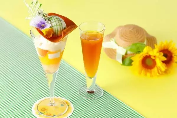 特徴的なのは、ひまわりを想起させるビタミンカラーと、麦わら帽子に見立てたデコレーションだ。パフェはセパレートタイプになっており、麦わら帽子に見立てたトップのデコレーションは、プレートに移してゆっくりと味わえる。食べ進めるほどに、さまざまな食感や味わいに出会えるはずだ。