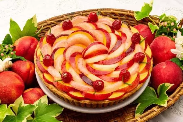 “桃&ネクタリン”を飾った杏仁ムースタルト