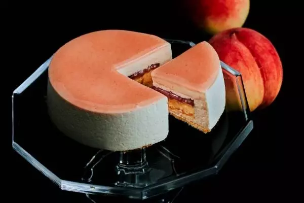 メゾンカカオの「旅するメゾン」では、月ごとに日本各地の旬の素材をメインにしたスイーツを展開している。2022年8月は、桃の名産地である山梨県の中でも、ひときわ手間暇かけて育てられた笠井農園の白桃を使ったスイーツが登場する。