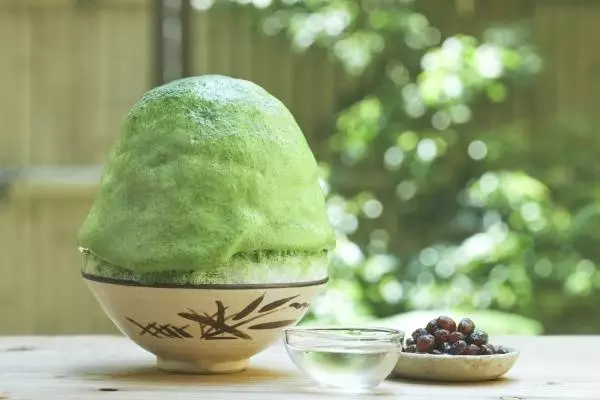3Fイベントテラスの注目は、京都・茶三楽の「抹茶エスプーマかき氷」。甘さ控えめに仕上げたふわふわの抹茶エスプーマをたっぷりとあしらった、和テイストの逸品だ。最後まで味を楽しめるように、北海道産小豆と白みつを別添えで用意。日本茶茶房ならではの上品な抹茶かき氷は、旨味豊かな茶葉の味わいを感じられるはずだ。
