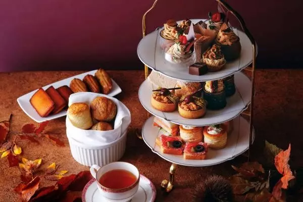「モンブラン アフタヌーンティー」は熊本産の和栗やフランス産マロンに、ラズベリーやピスタチオなど厳選した素材を組み合わせ栗の魅力を存分に引き出したアフタヌーンティー。モンブランやシャンティ、テリーヌなど栗の甘みと奥深い味わいを堪能できるスイーツが勢揃いする。