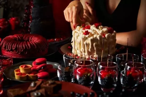 仮面舞踏会がテーマ「赤&黒」のゴシックスイーツビュッフェ