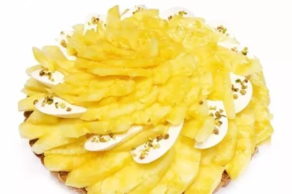 東京・銀座店では、ジューシーなパイナップルに爽やかなライムを合わせた「パイナップルとライムのケーキ」を発売。花のようにあしらったパイナップルには、金箔を添えて特別感をプラスした。